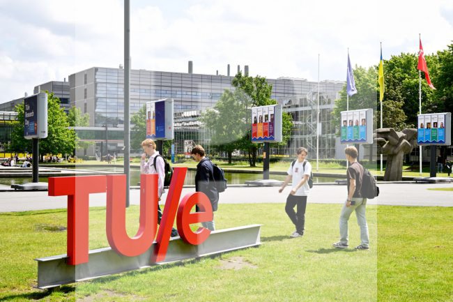 studenten op de campus van de TU Eindhoven